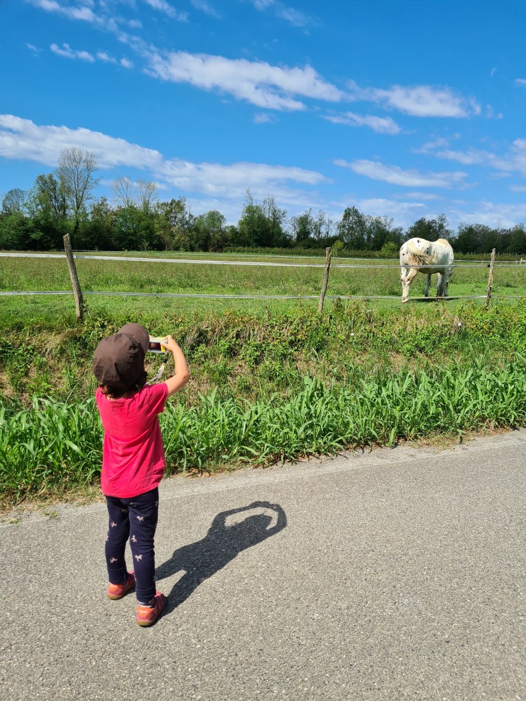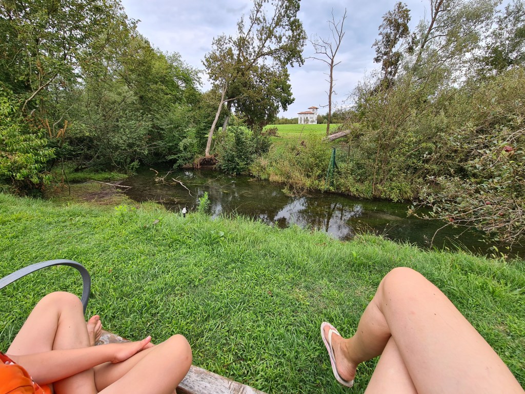 Am nächsten Tag kam unser Tatendrang durch, und wir beschlossen einen kleinen Ausflug zu machen zum nahegelegenen Biotop. Biotop…was war das denn noch einmal…Federico erklärte uns was dieses Gebiet so besonders machte. Vor vielen Jahren erreichte Gletscherwasser die Gegend. Sie spülte viele Samen aus den Bergen und anderen Gebieten mit. Diese, für das Tiefland eher untypischen Pflanzen, fingen an zu wachsen und bilden nun ein großes, mittlerweile geschütztes Gebiet. Leider waren seit dem letzten Sturm einige Schäden entstanden und bisher noch nicht repariert. Daher gab es auch keine Führungen. Aber mit den Tipps und Hinweisen von Federico machten wir uns allein auf den Weg. Wir fanden eine 400 Jahre alte Eiche, viele viele Grashüpfer und Frösche und eine Vielfalt von Pflanzen. Wir statteten die Kinder mit ihren Outdoorforschersachen aus und sie waren trotz Mittagshitze (wir sind einfach morgens sehr langsam) super interessiert und sehr traurig als wir durch waren.