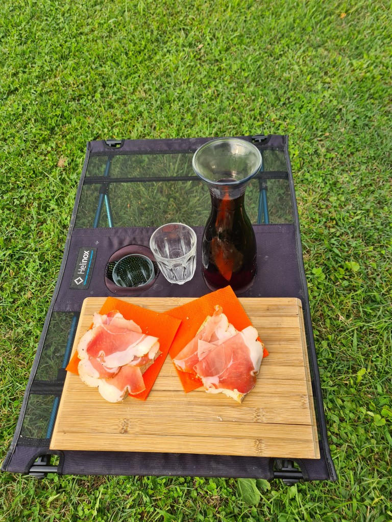 Zurück zum Tag…wir wechselten zwischen im Pool baden, spielen und vorlesen hin und her. Am Abend gönnten sich die Erwachsenen einen Wein und zwei belegte Brote mit Schinken. Letzteres war eher Theorie, weil die Kleine mit ihrem Charme uns die Brote aus den Rippen leierte. Also doch nur Alkohol für uns 😜