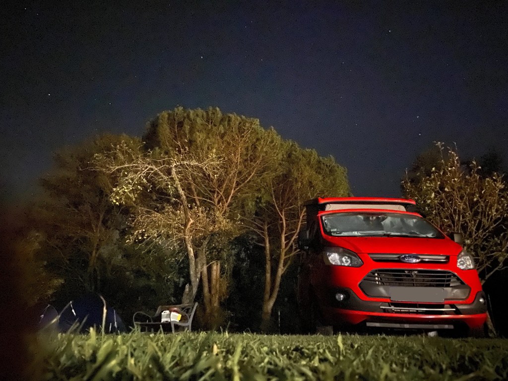 Er begrüßte uns herzlich und wies uns einen Platz auf der Wiese nahe dem Pool und den Toiletten zu. Alles war sehr natürlich, offen und naturnah gehalten … so ganz anders als das, was wir gerade am Meer erlebt haben. Eine große Tafel stand gedeckt bereit für das Abendbrot für die Campinggäste … Federico hatte gekocht: Pasta, Vorspeisen und Nachspeisen mit viel Wasser, Saft und Wein als flüssiger Begleiter. Eine lange Tafel voller unbekannter Personen aus allen möglichen Ländern, die alle eines gemeinsam hatten: das Campen.