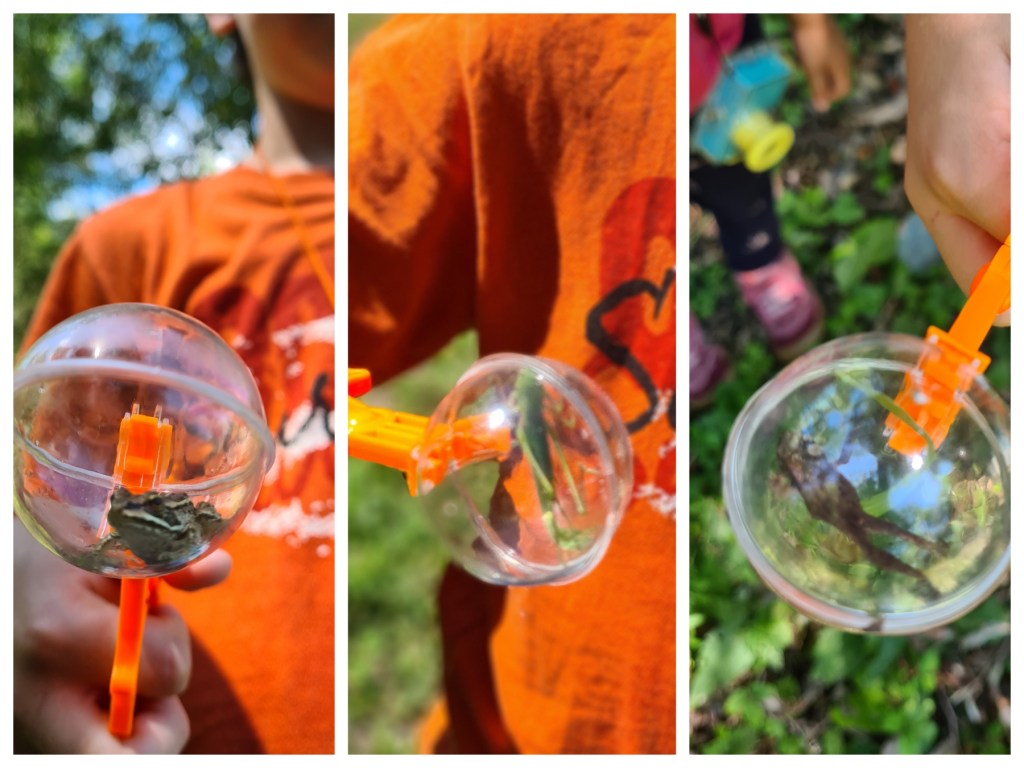 …das fragte ich den Großen und mit leuchtenden Augen antwortete er mir: “ Natürlich Forscher, deswegen untersuchen ich doch hier alles“. Schön, dass er seinen Ineressen bewusst ist und diesen folgt. Auf die Frage wie ich ihn unterstützen könnte, war die Antwort, dass ich seine Assistentin sein könnte. Naja um ehrlich zu sein habe ich nie davon geträumt Frösche zu fangen 🙄 – aber für das Kind rette ich auch gern mal irgendwelche Insekten und Amphibien. Zur Vollständigkeit: Die Kleine möchte Polizistin werden. Aber beide wollen hoffentlich „glücklich“ werden…zumindest hören wir dank der Kleinen das Lied „Glücklich“ von Dikka im Auto hoch und runter….hoffentlich bleibt etwas hängen.